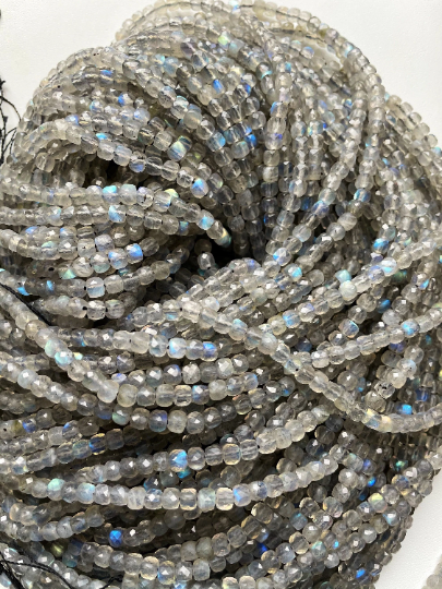 AAA Natural Labradorite Gemstone Bead Faceted 4mm Cube Shape, Beautiful Natural Gray Blue Flash Labradorite Bead Excellent Quality 15.5"