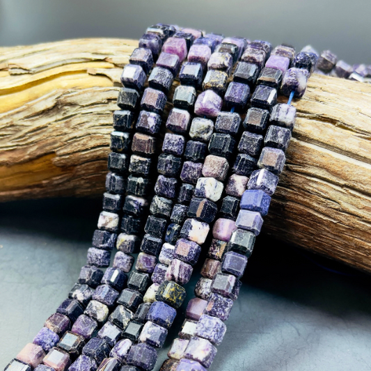 Natural Charoite Gemstone Beads - 7mm Faceted Cube Beads - Beautiful Purple Color - Excellent Quality - full Strand 15.5”