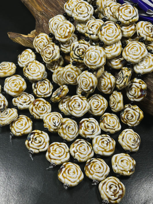 Beautiful Hand Painted Porcelain Beads, 26x27mm Unique Hand Painted Porcelain Rose Flower Shape Bead, Gorgeous Beige Color Porcelain Bead 9"