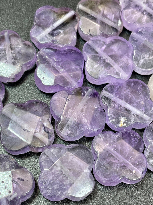 Natural amethyst stone bead. 17x17mm faceted clover flower shape. Gorgeous natural purple lavender color. Great quality amethyst pendant.