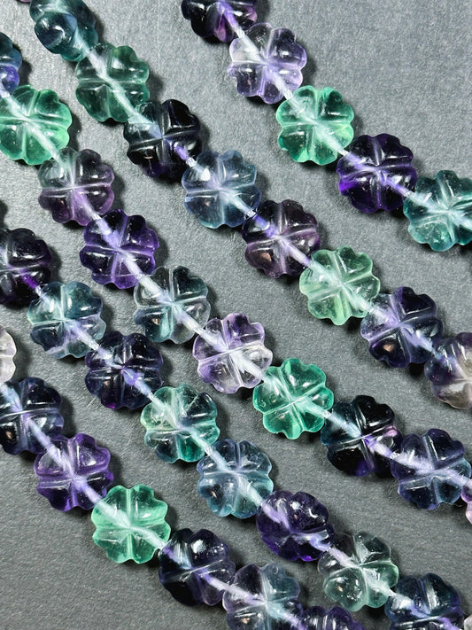 AAA Natural Fluorite Gemstone Bead, Hand Carved 12mm Flower Shape Bead, Beautiful Natural Purple Green Color Fluorite Bead Full Strand 15.5"