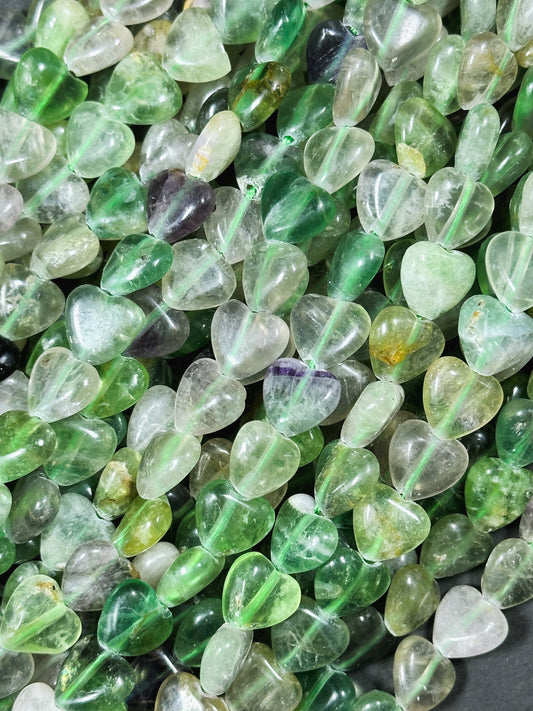 AAA NATURAL Fluorite Gemstone Bead 14mm Heart Shape Bead, Gorgeous Natural Purple Green Clear Color Fluorite Gemstone Bead Full Strand 15.5"