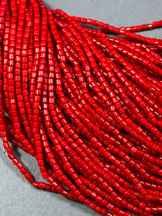 Natural Bamboo Coral Gemstone Bead 3mm Tube Shape Bead, Beautiful Natural Red Color Bamboo Coral Beads, Great Quality Full Strand 15.5"