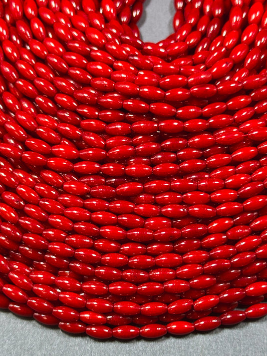 Natural Bamboo Coral Gemstone Bead 6x3mm Rice Shape Bead, Beautiful Natural Red Color Bamboo Coral Beads, Great Quality Full Strand 15.5"