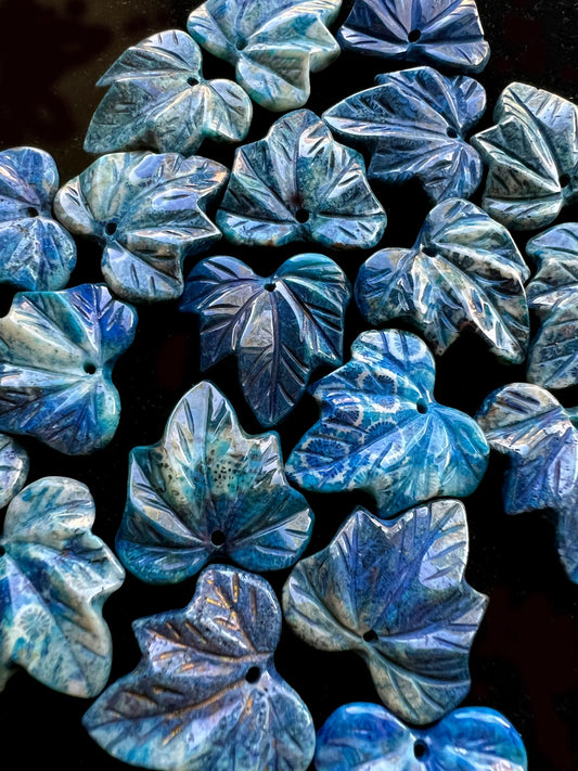 Natural Blue Fossil Coral Pendant Hand Carved Maple Leaf Shape 24mm Handmade Earring Loose Bead Loose Pendant Loose gemstone Handmade stone