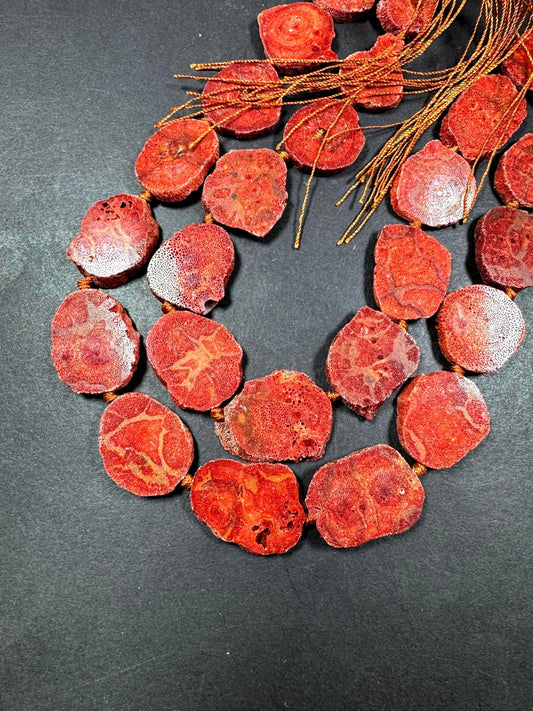100% Natural Spanish Sponge Coral Gemstone Freeform Oval Shape Beads, Gorgeous Natural Orange Red Color Sponge Coral Gemstone Bead 15.5"