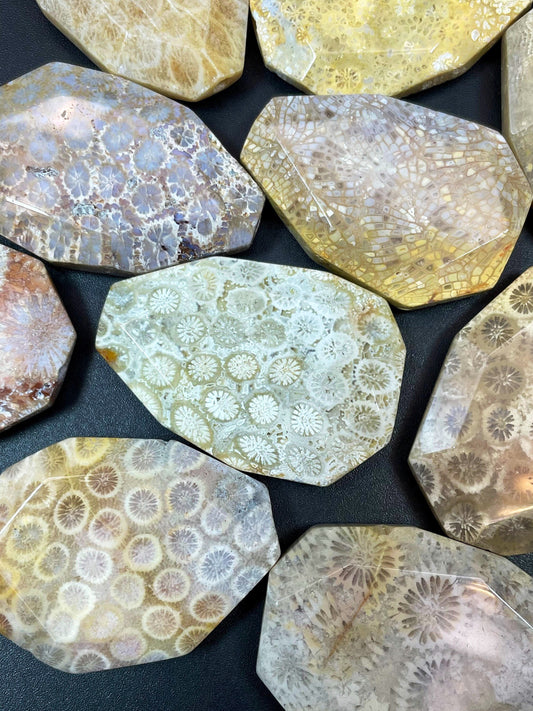 AAA Natural Fossil Coral Gemstone Bead Faceted 28x40mm Oval/Teardrop Shape, Beautiful Beige Color Fossil Coral LOOSE BEADS