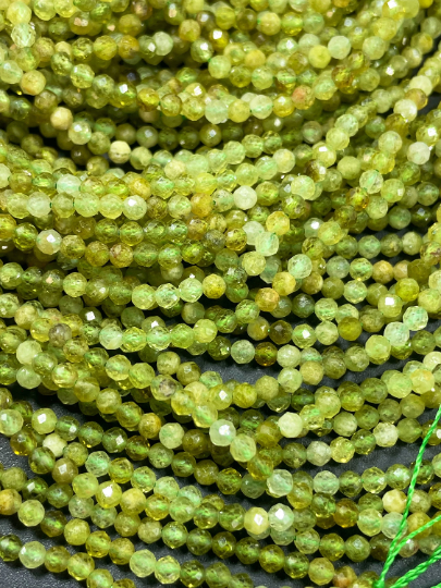 AAA Natural Green Garnet Gemstone Bead Faceted 2.5mm Round Bead, Gorgeous Natural Olive Green Color Green Garnet Stone Bead