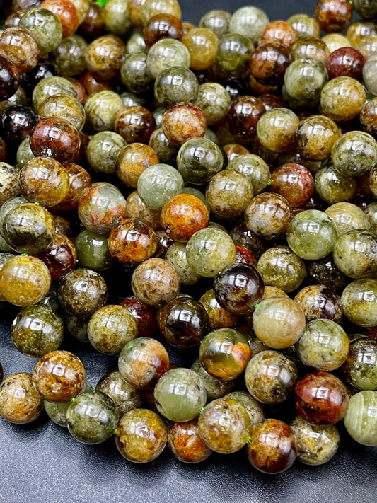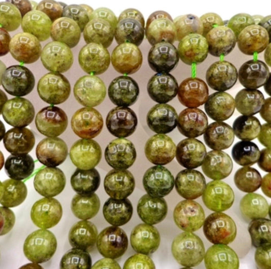 AAA Natural Green Garnet Gemstone Bead 6mm 8mm 10mm Round Bead, Beautiful Green Brown Color Garnet Gemstone Beads, Full Strand 15.5"