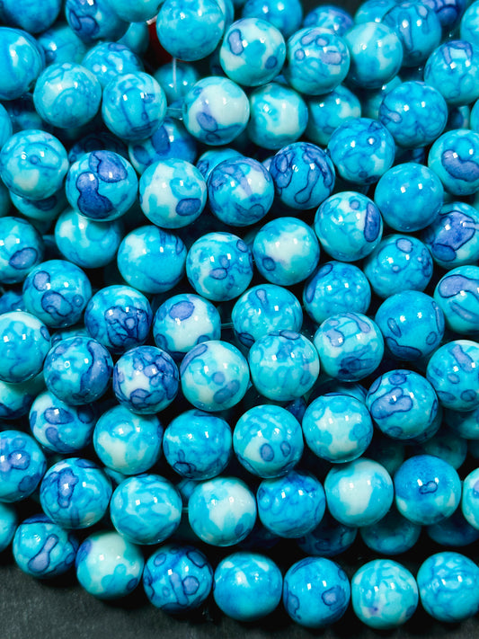 Natural Blue Jade Gemstone Bead 6mm 8mm 10mm Round Beads, Beautiful Blue Dyed Color Jade Gemstone Beads, Great Quality Full Strand 15.5"