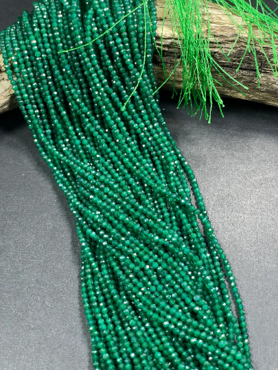 Natural Green Jade Gemstone Bead Faceted 2mm 3mm Round Beads, Gorgeous Natural Green Color Jade Stone Beads 15"