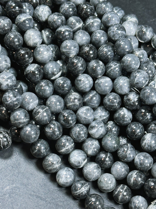 Natural Black Jasper Gemstone Bead 10mm Round Beads, Beautiful Black Dark Gray Color Jasper Gemstone Beads, Great Quality Full Strand 15.5"