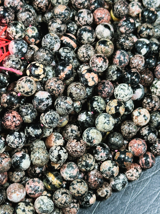 NATURAL Pink Snowflake Jasper Gemstone Bead 6mm 8mm 10mm Round Beads, Beautiful Black Pink Color Jasper Gemstone Loose Beads Full Strand 15.5"