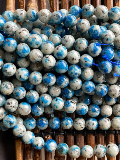 Natural K2 Stone Bead 6mm 8mm 10mm Round Beads, Gorgeous Gray Blue Color with Black Specks K2 Bead, Great Quality Full Strand 15.5"