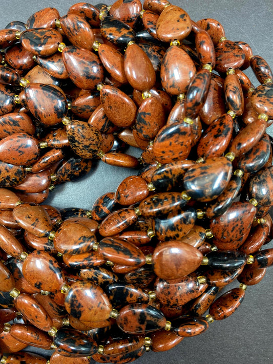 Beautiful Mahogany Obsidian Gemstone Bead 12x16mm Teardrop Shape Bead, Beautiful Natural Red Color Onyx Gemstone Beads, Full Strand 15.5"