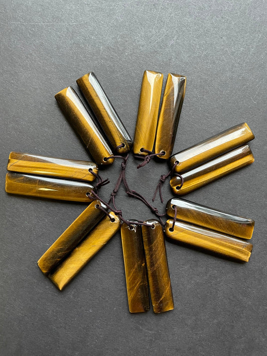 Natural Tiger Eye Gemstone Earrings, Beautiful Natural Tiger Eye Gemstone Earrings, 12x40mm Rectangle Shape Earrings