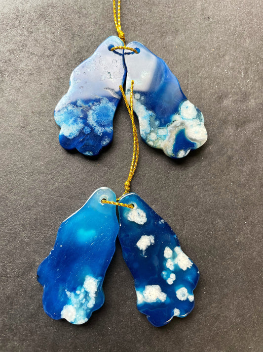 Natural Blue Blossom Flower Agate Gemstone Earrings 22x42 Freeform Shape