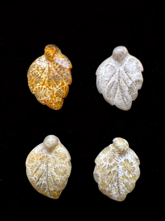 Natural Fossil Coral Pendant Hand Carved Leaf Shape 17x25mm Gorgeous Yellow Gray Color Handmade Earrings Loose Bead Loose Earring
