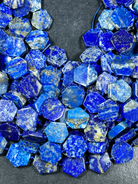 NATURAL Lapis Lazuli Gemstone Bead 13mm 15mm Hexagon Shape, Gorgeous Natural Blue Color Lapis Lazuli Gemstone Loose Beads Full Strand 15.5"