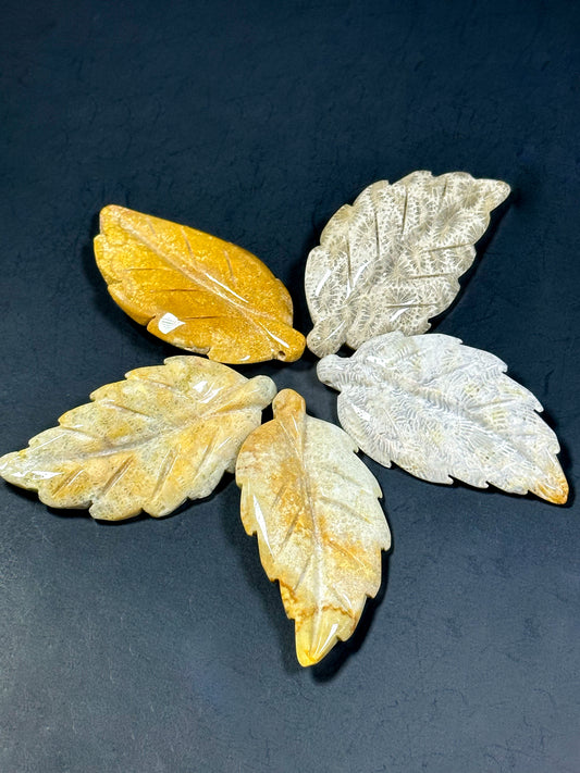 NATURAL Beautiful Hand Carved Fossil Coral Gemstone Pendant 58x32mm Leaf Shape, Gorgeous Gray Beige Color Fossil Coral Pendant