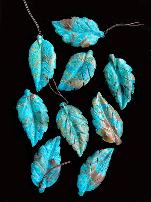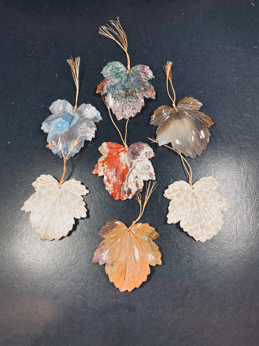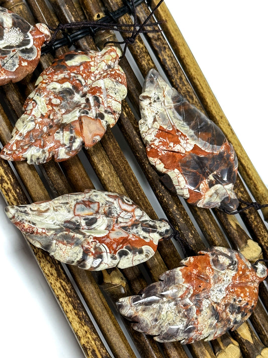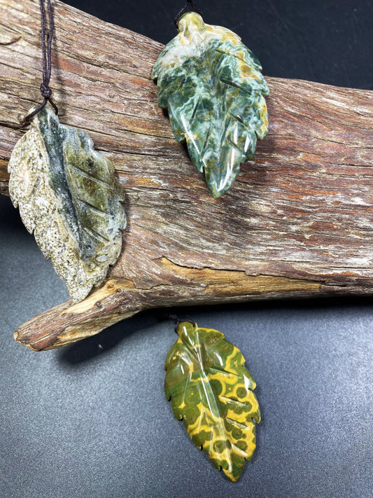 Hand Carved Natural Ocean Jasper Gemstone Pendant, Hand Carved Leaf Shape Pendant