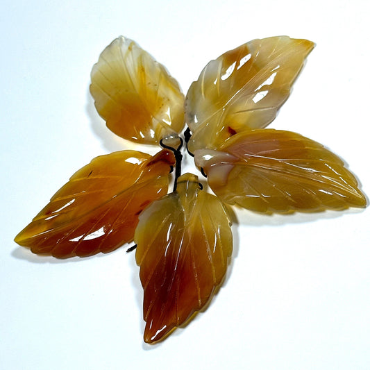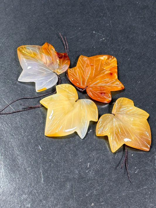 Beautiful Natural Hand Carved Botswana Gemstone Pendant 55mm Maple Leaf Shape Pendant, Gorgeous Orange Color Botswana Pendant