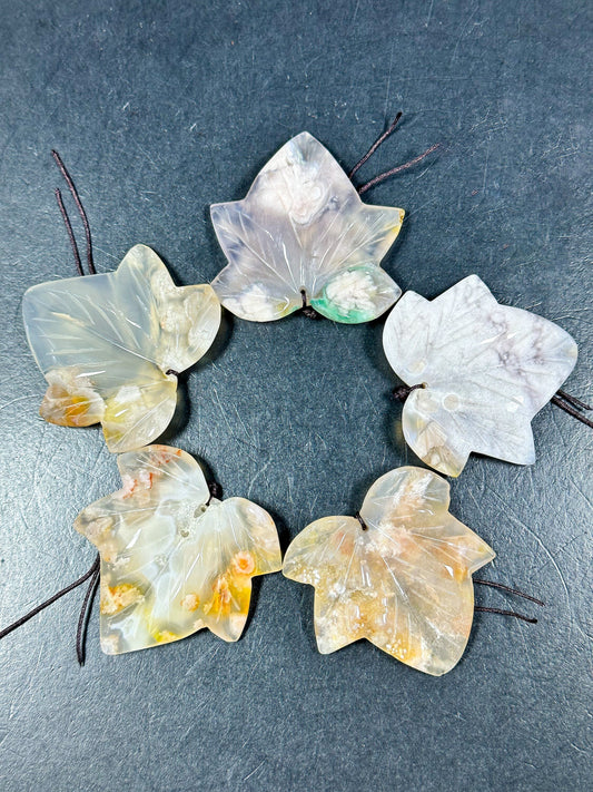 Natural Blossom Agate Hand Carved Maple Leaf Pendant 24mm Gorgeous Pink Beige Color Handmade Earring Loose Bead Loose Pendant Loose Earring