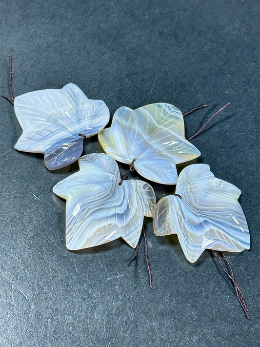 Natural Botswana Agate Leaf shape 17x25mm Gorgeous Gray White Color! Loose Pendant Loose Gemstone Loose Bead Handmade Jewelry Great Quality!