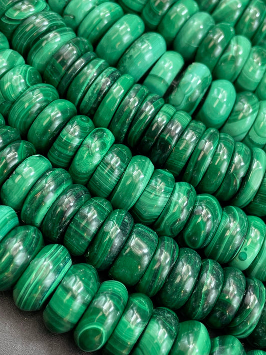 AAA Natural Malachite Gemstone Bead 12x6mm Rondelle Shape, Gorgeous Natural Green Color High Quality Malachite Gemstone Bead