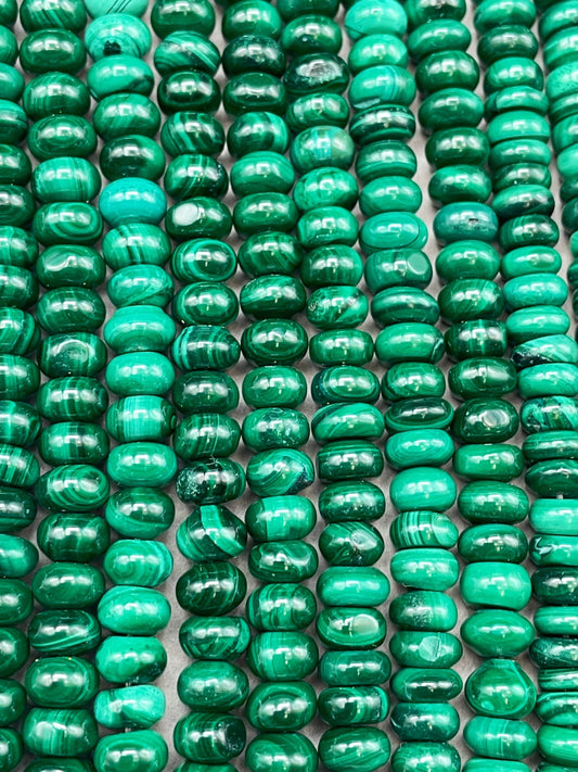 AA Natural Malachite Gemstone Bead 5x8mm Rondelle Shape, Beautiful Natural Dark Green Color Malachite Gemstone Bead, Full Strand 15.5"