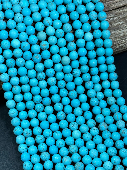 NATURAL Matte Blue Howlite Turquoise Gemstone Bead 6mm 8mm 10mm Round Beads, Gorgeous Turquoise Blue Color Beads Full Strand 15.5"