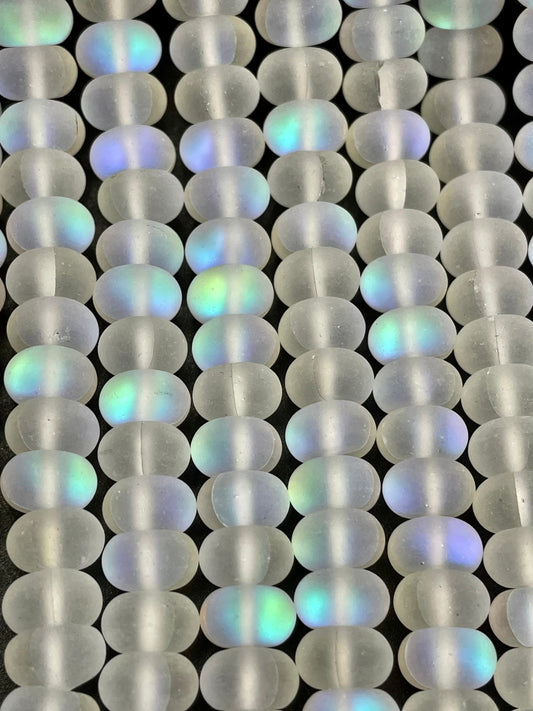Mermaid Beads, 5x8mm, Matte White Synthetic Glass Moonstone Beads, Rondelle Shape, Full strand 15" High Quality!!!