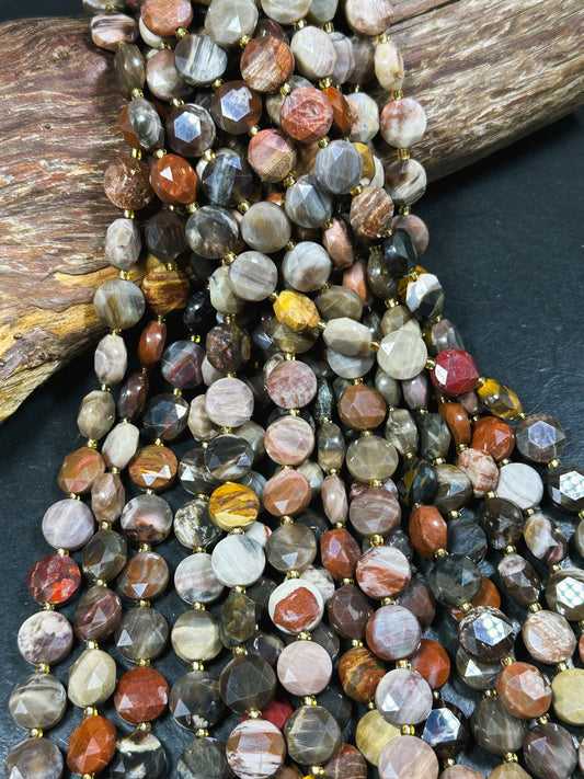 Natural Black Moonstone Gemstone Bead Faceted 12mm Coin Shape Bead, Beautiful Multi Brown Color Black Moonstone Bead, Full Strand 15.5"