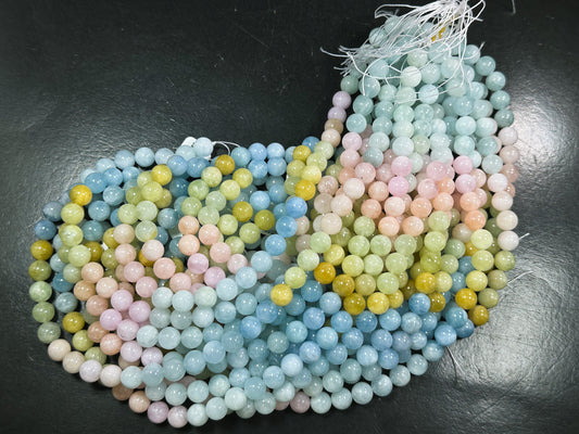 AAA Natural Morganite Gemstone Bead 6mm 8mm 10mm Round Beads, Beautiful Natural Multicolor Morganite Gemstone Beads, Excellent Quality 15.5"