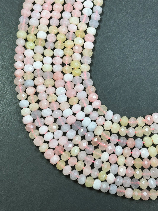 AAA Natural Morganite Gemstone Bead Faceted 4x6mm Rondelle Shape Bead, Beautiful Multicolor Pink, Blue, Yellow Morganite Gemstone Bead 15.5" Strand