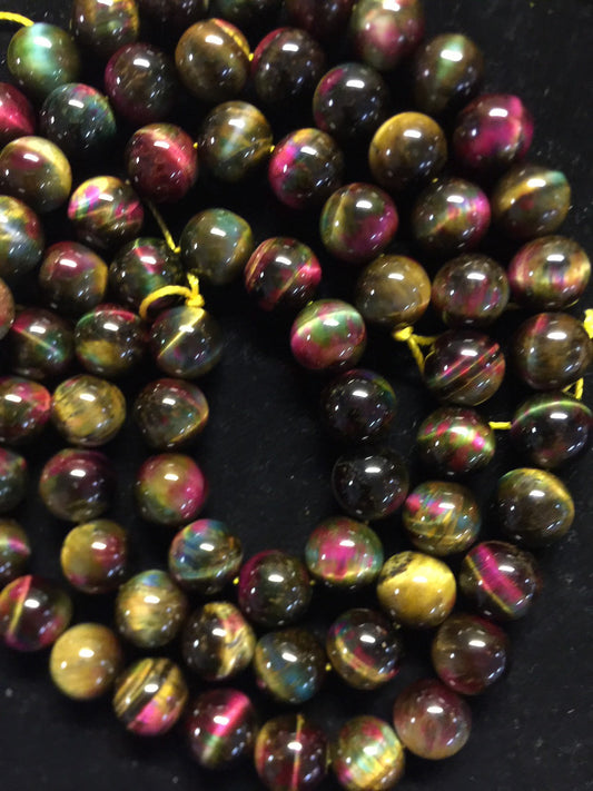 Natural Galaxy Tiger Eye Gemstone Beads 4mm 6mm 8mm 10mm 12mm Round Beads, Gorgeous Multicolor Tiger eye Gemstone Beads Full Strand 15.5"