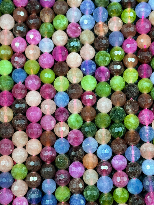 NATURAL Tourmaline Gemstone Bead Faceted 8mm 10mm Round Bead, Gorgeous Multicolor Tourmaline Gemstone Beads Full Strand 15.5" Great Quality Beads