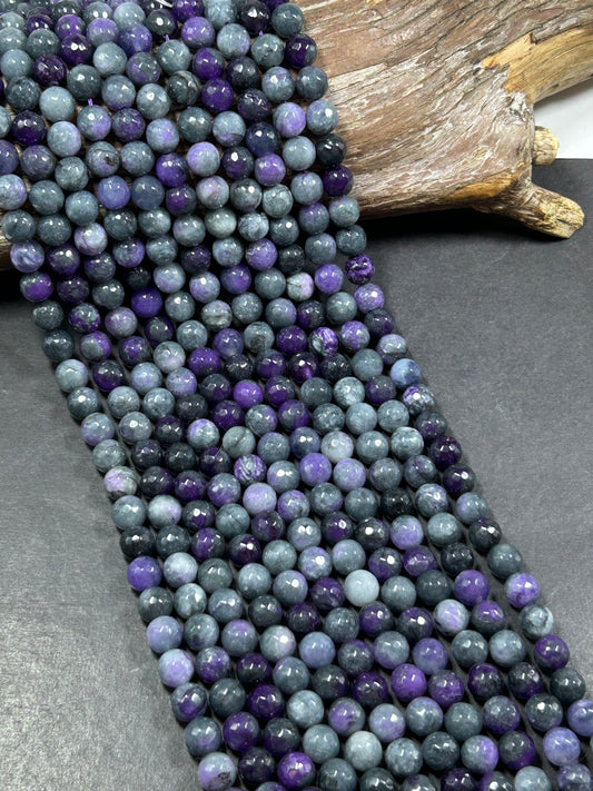 AAA Natural Midnight Jade Gemstone Bead Faceted 6mm 8mm 10mm Round Bead Gorgeous Natural dark gray deep purple Jade Excellent Quality 15.5"