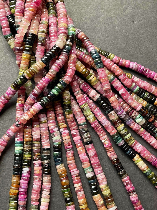 AAA Natural Tourmaline Gemstone Bead 2x6mm Rondelle Shape Bead, Beautiful Multicolor Tourmaline Gemstone Beads
