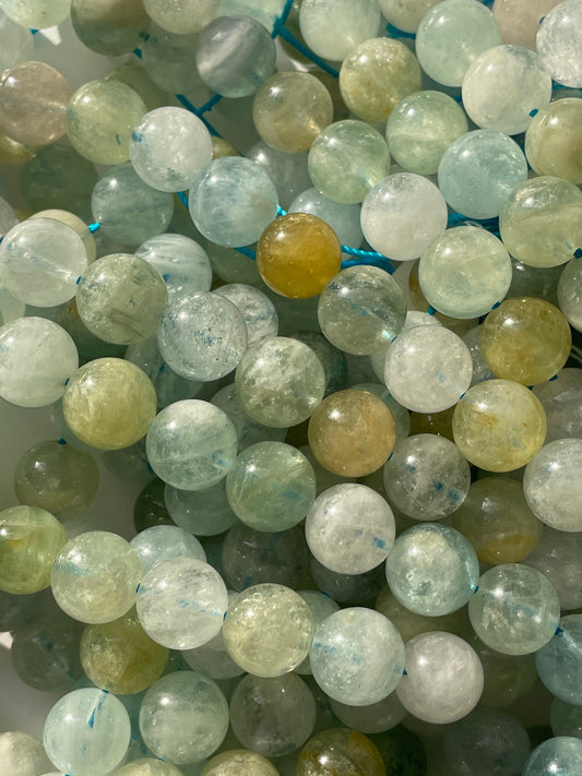 Natural Aquamarine Gemstone Bead 6mm 8mm 10mm Round Bead, Beautiful Multi Blue Light Green Color Aquamarine Gemstone Beads, 15.5" Strand
