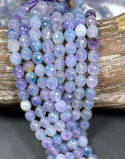AAA Natural Moonlit Jade Gemstone Bead Faceted 6mm 8mm 10mm Round Bead, Gorgeous Clear light purple & blue Jade Excellent Quality 15.5"