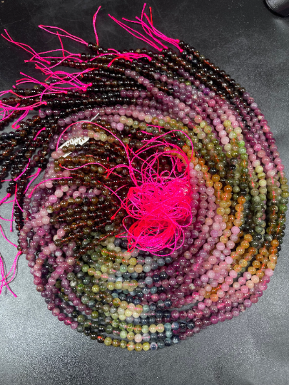 AAA Natural Tourmaline Gemstone Bead 4mm Round Beads, Gorgeous Natural Multicolor Watermelon Tourmaline Gemstone Bead, Excellent Quality
