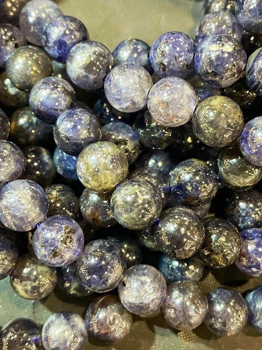 Natural Iolite Gemstone Bead 4mm 6mm 8mm 10mm Round Bead, Gorgeous Dark Blue Gray Color Iolite Beads, Full Strand 15.5"