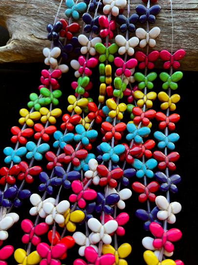 Natural Multicolor Howlite Turquoise Bead Butterfly Shape 14x19mm Gorgeous Multicolor Colorful Beads Full Strand 15.5"