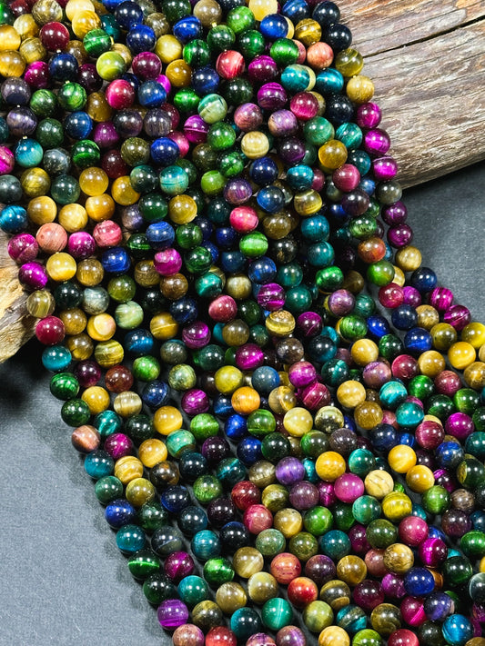Natural Multi Tiger Eye Gemstone Bead 6mm 8mm Round Beads, Gorgeous Multicolor Tiger Eye Gemstone Beads, Excellent Quality Full Strand 15.5"