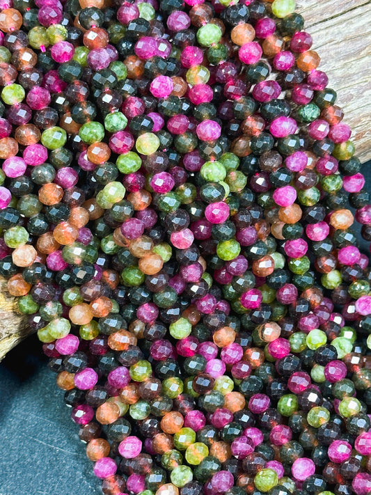 NATURAL Tourmaline Gemstone Bead Faceted 6x5mm 8x6mm Rondelle Shape, Beautiful Multicolor Tourmaline Gemstone Bead Great Quality Full Strand 15.5"
