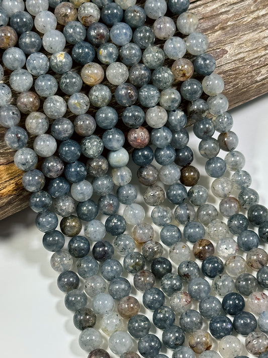 NATURAL Iolite Gemstone Bead 6mm 8mm Round Beads, Beautiful Natural Gray Blue Color Iolite Gemstone Bead Loose Beads Full Strand 15.5"