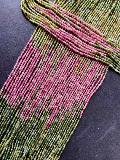 AAA Natural Tourmaline Gemstone Bead Faceted 2mm Round Bead, Beautiful Multicolor Pink Green Gemstone Beads 15.5"
