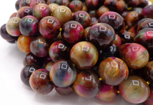 Multicolor Green Galaxy Tiger Eye Gemstone 6mm 8mm 10mm Round Beads, Gorgeous Multicolor Green Purple Teal Color Galaxy Tiger Eye Beads 15.5"