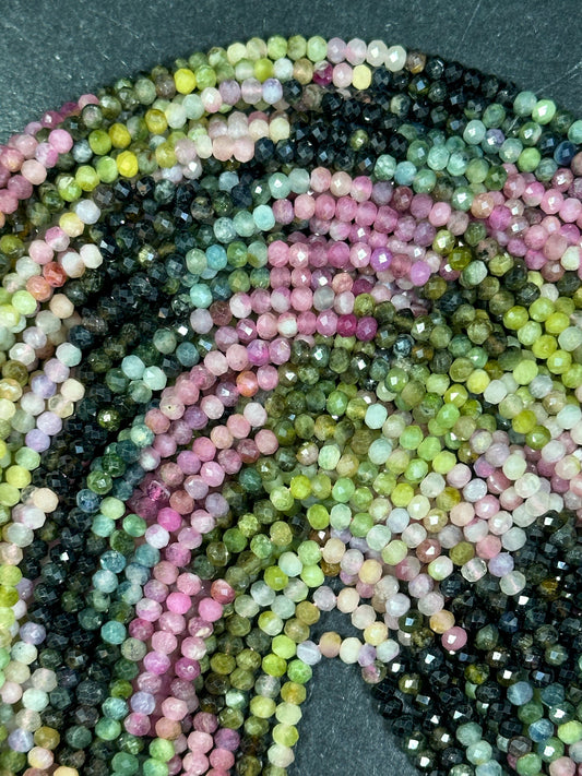 NATURAL Tourmaline Gemstone Bead Faceted 3mm Rondelle Shape, Beautiful Multicolor Tourmaline Gemstone Bead Great Quality Full Strand 15.5"